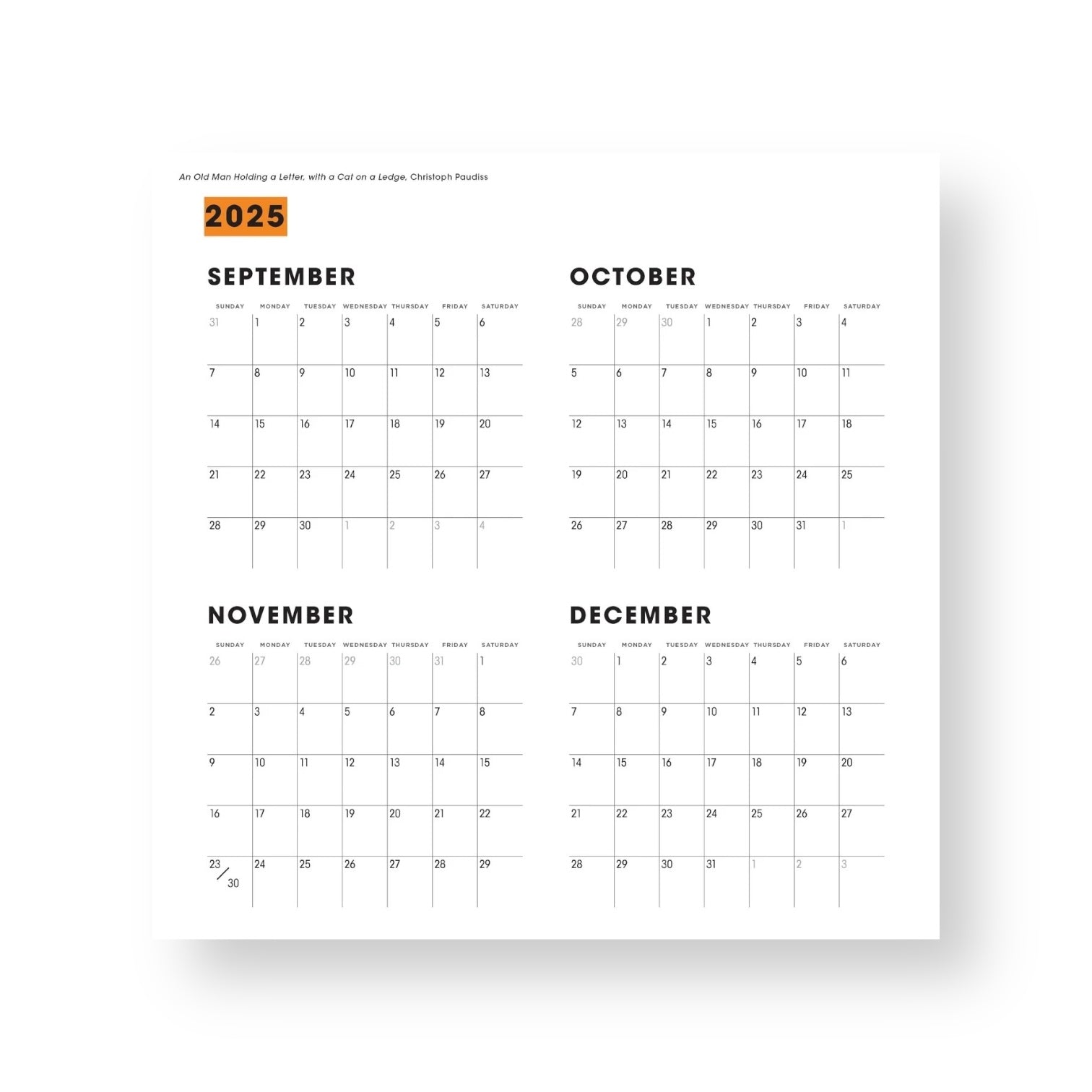 24-page 12 x 12 inch month-by-month calendar