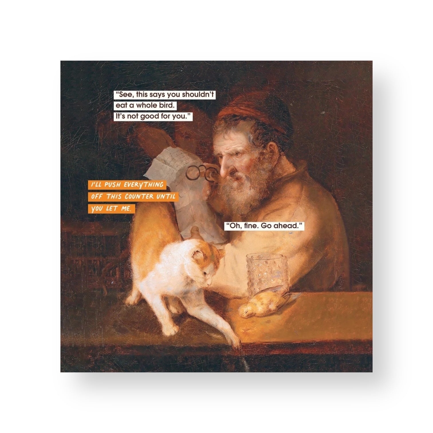 With its unlikely pairing of classical artwork and meme-style captions all about our feline friends, this calendar is the perfect present for any flavor of cat person. Whether they are the Smotherer, the Oversharer, the Pushover, the Proud Parent, or the Roommate, this hilariously insightful wall calendar is sure to brighten their day every month of the year.