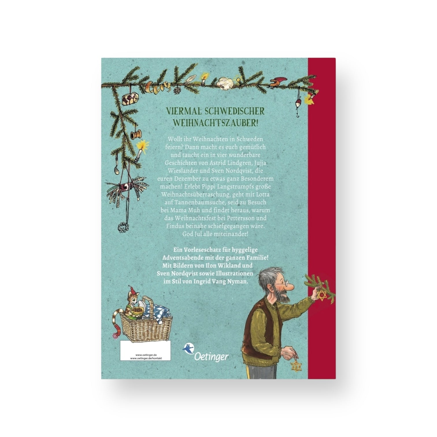 Ganz viel schwedischer Weihnachtszauber in einem Band! Hier verstecken sich ganze vier wunderbare Geschichten von Astrid Lindgren und Sven Nordqvist, die den Advent und die Weihnachtszeit zu etwas ganz Besonderem machen! Erlebe Pippi Langstrumpfs große Weihnachtsüberraschung, geh auf Tannenbaumsuche mit Lotta, feiere mit Mama Muh und finde heraus, ob Pettersson und Findus ihr Weihnachtsfest doch noch retten können. Ein wunderbar hyggeliger Vorleseschatz, der unter keinem Weihnachtsbaum fehlen darf.